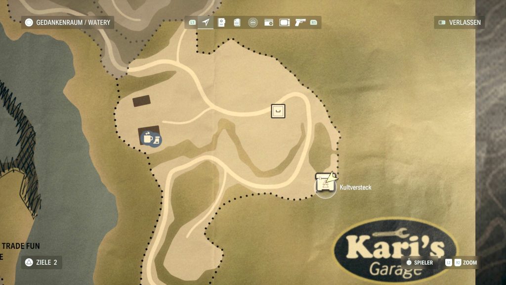 Sobald die Überschwemmung in der Lighthouse-Wohnwagensiedlung nach dem Sieg über Kultisten-Bosse Mulligan und Thornton zurückgegangen ist, kann das Kultversteck südlich von Sagas Wohnwagen erreicht werden. Allerdings ist auch diese Truhe mit einem Vorhängeschloss versehen, das den richtigen Schlüssel benötigt. Es gibt einen Hinweis, der zum Schlüssel führt.