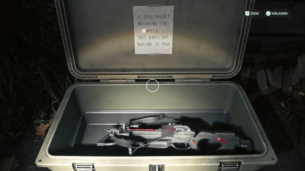 Wenn ihr die Jagdhütte auf dem Waldwanderweg verlasst und den langen Pfad im Osten nehmt, kommt ihr gleich beim nächsten Kultversteck vorbei. Merkt euch einfach die Reihenfolge der blinkende Code-Sequenz des digitalen Schlosses, um die Truhe zu öffnen.