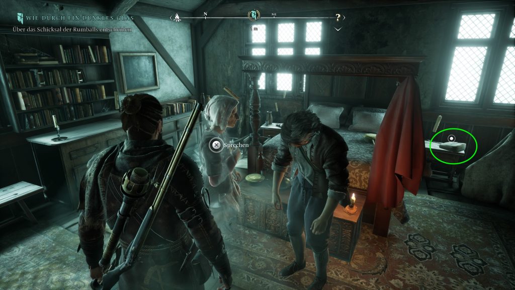 Auf das Puzzle oder Rätsel mit den schief aufgehängten Bildern werdet ihr während der Spukermittlung „Wie durch ein dunkles Glas“ aufmerksam. In der Quest macht ihr die Zimmer durch die Beseitigung des korrupten Efeus wieder betretbar. Dabei findet ihr die Notiz „Abbies Anmerkungen über Gemälde“ im OG am Ende des Gangs auf dem Schreibtisch mit dem Spinnrad.