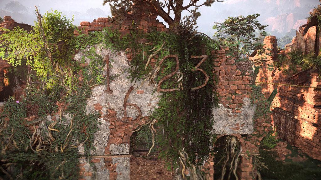 Mit dem Depot-Büroschlüssel kehrt ihr zum Zimmer mit der Leiter im Westflügel des Hotels zurück. Steckt den Depot-Büroschlüssel in das Schlüsselmodul neben der abgeschlossenen Tür. Danach muss noch der korrekte Zugangscode in das Modul eingegeben werden: 1923. Daraufhin öffnet sich die Tür und gibt den Weg frei, um ein weiteres Seil zu erreichen. Lasst Aloy mit Hilfe dieses Seils zum Ostteil des Hotels rutschen, wo sich das Ornament auf der ersten Etage befindet. Entfernt mit dem Anzünder zuerst den Feuerglimmer an der Wand aus Backsteinziegeln in diesem Raum.