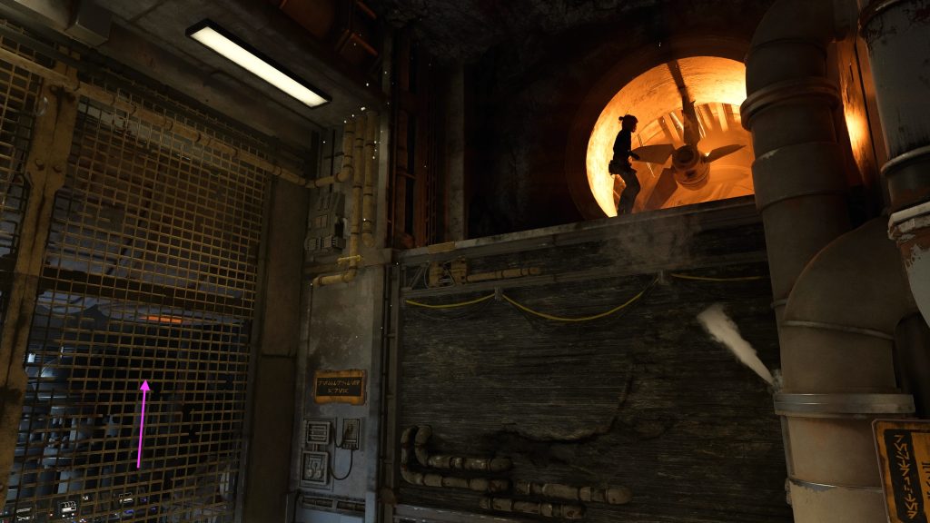 Habt ihr die Turbinen überwunden, müsst ihr ein paar Ashiga-Wachen unterwegs leise ausschalten, und mit der Hilfe von Nix‘ Ablenkungsmanöver die Überwachungskamera täuschen. Wenn ihr unterwegs die Leiter vor der Kamera nach unten steigt, erreicht ihr eine Truhe mit Credits.