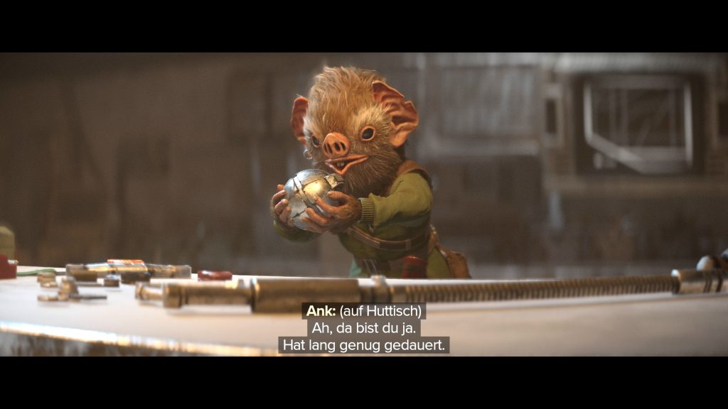 Auf der anderen Seite auf gleicher Höhe befindet sich der Knopf zum Ausschalten von einigen Turbinen. Schickt Nix zum Knopf. Danach könnt ihr die Truhe hinter dem oberen Ventilator plündern und den Raum durch den unteren Ventilator unbeschadet verlassen. Ihr erreicht Ank Parako in der Werkstatt und erfahrt mehr Details über den Plan der Tresorknackerin.