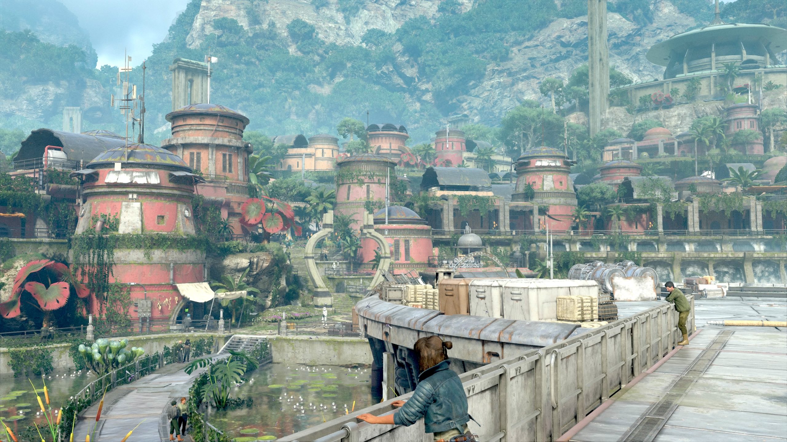 Wie in Mirogana gibt es auch in Myrra, neben neutralen Vierteln, wieder mehrere von Syndikaten kontrollierte Bezirke. Außer der Hauptstadt von Akiva gibt es noch kleinere Orte wie Sashin, die ihr im Verlauf der Aktivitäten kennenlernt. Die Forschungstation 57 für diese Hauptmission liegt mitten im Dschungel in der Region Selasaberg. Schwingt euch also auf Kays Gleiter im Laderaum der Bahnbrecher und düst in die Richtung der Zielmarkierung auf dem Kompass.