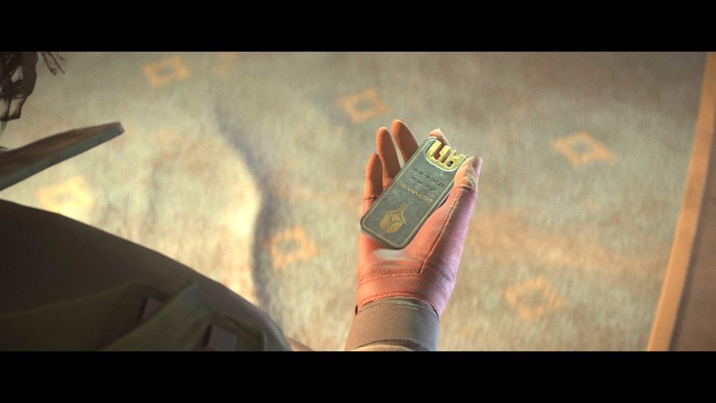 In der Kabine gibt es außerdem noch einen Datenblock mit Informationen über den betrügerischen Sabacc-Spieler Brayzak, der sich beim Schummeln immer räuspert. Mit diesen Informationen könnt ihr jetzt Zana Gatta die Einladung zum großen Sabacc-Turnier abknöpfen. Die Generalschüsselkarte ermöglicht euch noch den Zutritt zur Kabine 7-20, in der ihr ein paar Behälter und Rohstoffe plündern könnt.
