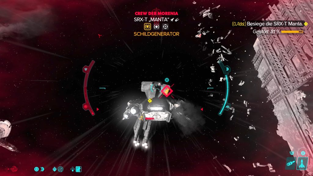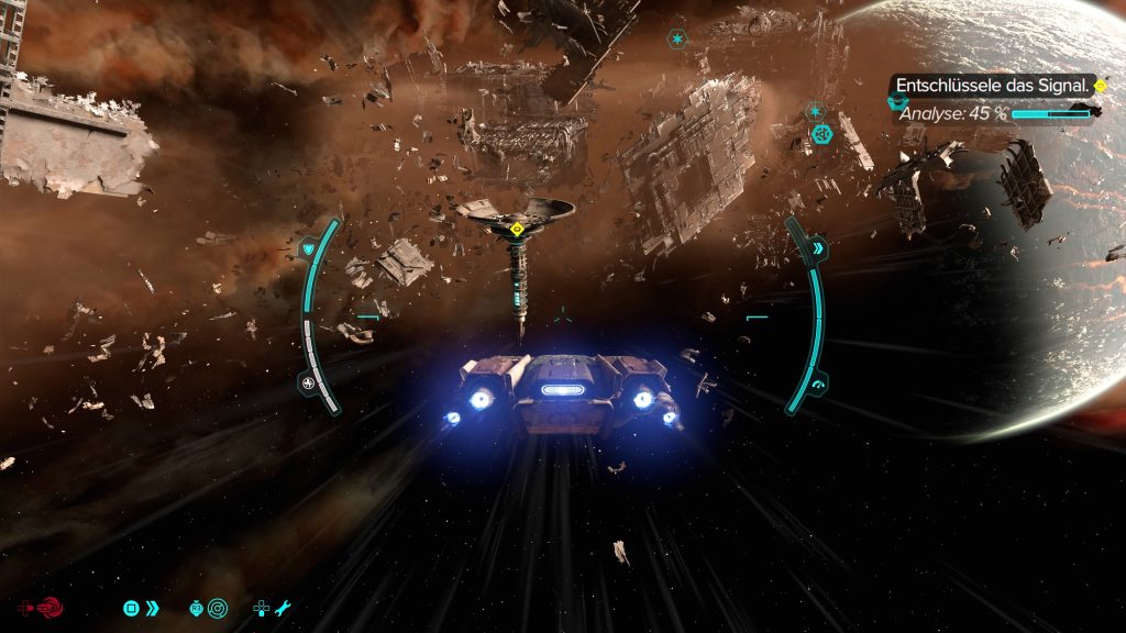 Vergesst während der Gefechte nicht, von der Reparaturfunktion der Bahnbrecher Gebrauch zu machen. Fliegt außerdem die Trümmerteile besiegter Raumschiffe ab, da ihr von diesen oft wertvolle Ladung bzw. wichtige Bauteile für Upgrades bergen könnt. Sobald ND-5 bei ca. 80% angelangt ist, taucht eine böse Überraschung auf.