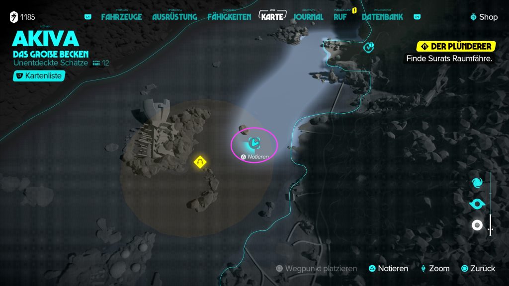 Temmin Wexley kann wegen dem benötigten Gleiter-Upgrade weiterhelfen, wenn ihr die benötigten Durastahlsstreben in dieser Expertenquest auftreibt. Die gestohlenen Sachen befinden sich auf Surats Raumfähre flussabwärts im Großen Becken von Akiva. Das Shuttle ist auf der kleinsten Insel im Becken gelandet. Haltet Ausschau nach aufsteigendem schwarzem Rauch. Am Anfang der kleinen Insel gibt es zwei Rampen, die ihr hintereinander als Sprungschanzen für den Gleiter nutzen könnt. Ihr gelangt so in die Nähe des abgestürzten Wracks.
