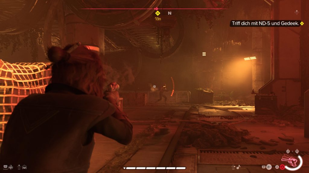 Nach der Zwischensequenz mit Asara trefft ihr euch noch einmal mit Gedeek, der sich um ND-5 kümmert. Kay dagegen hat wegen der dringend benötigten Ersatzteile für ND-5 von Asara einen neuen Auftrag von der Rebellenallianz hinsichtlich der Geiseln des Huttenkartells erhalten.