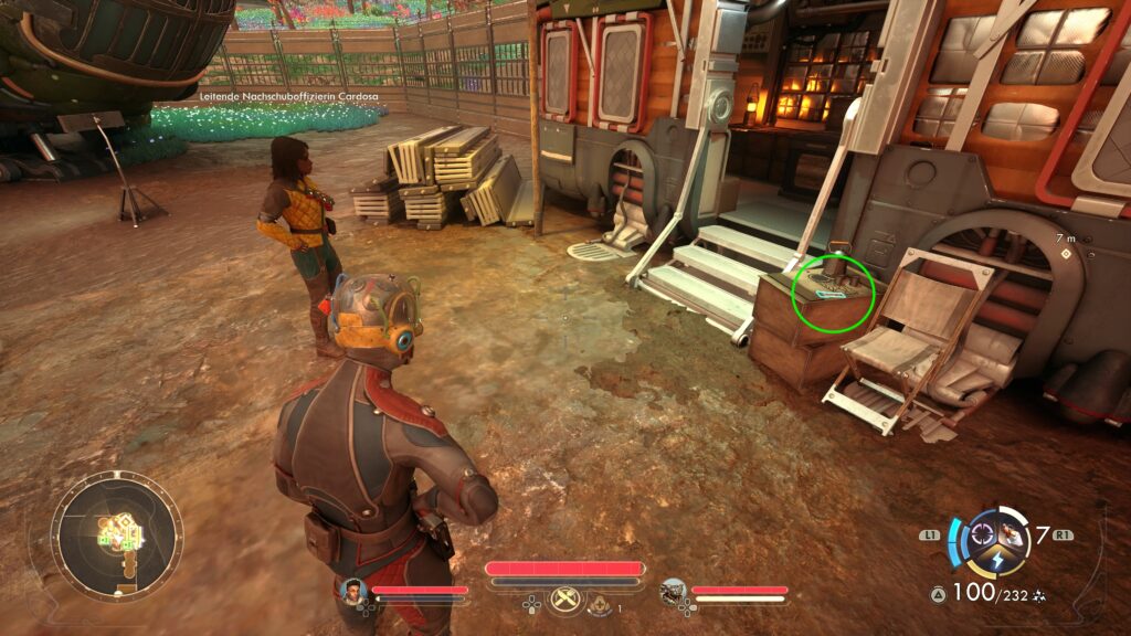Habt ihr euch wegen der Aussicht auf gute Verhältnisse für eine Zusammenarbeit mit Sub Rosa entschieden, um in Cordosas Terminal einzudringen, begebt ihr euch zum Zeltlagerplatz der Konzensoldaten in Fairfield mit dem gelandeten Raumschiff und der Werkbank. Hier hält sich die Quartiermeisterin von Auntie’s Choice auf.